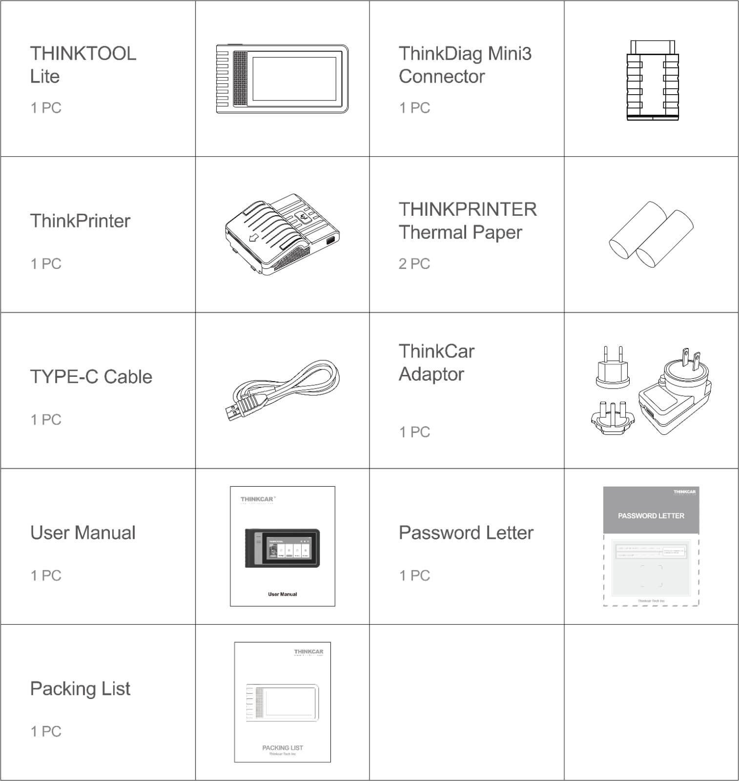 THINKTOOL Lite yra 6 colių OE lygio diagnostikos įrankis, sukurtas THINKCAR, kuris palaiko visą automobilio visos sistemos diagnostiką, įskaitant nuskaitymą ir išvalymą gedimo kodą, tiesioginį duomenų srautą, dviejų krypčių valdymą, paleidimo testą, ECU kodavimą ir dar daugiau, skirta 128 + automobilių gamintojai visame pasaulyje.